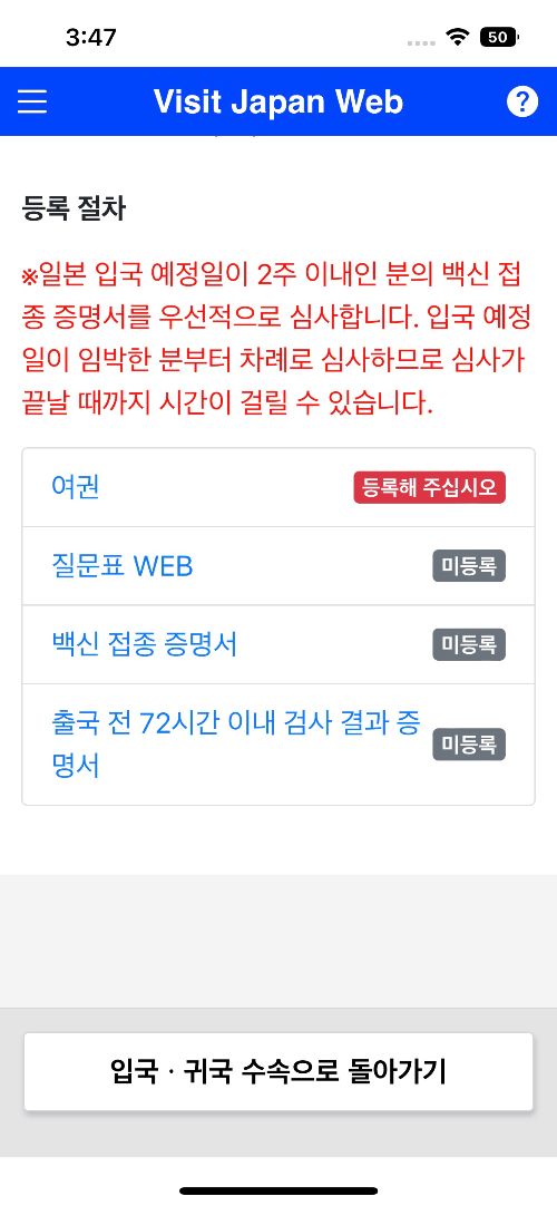 여행 여정의 숙소 정보나 여권 정보 등 은근히 귀찮은 정보들을 많이 입력해야 하고, 일본 입국 심사에서 어차피 모바일 QR 코드가 필요하므로 미리 챙기시는 것이 좋습니다.
