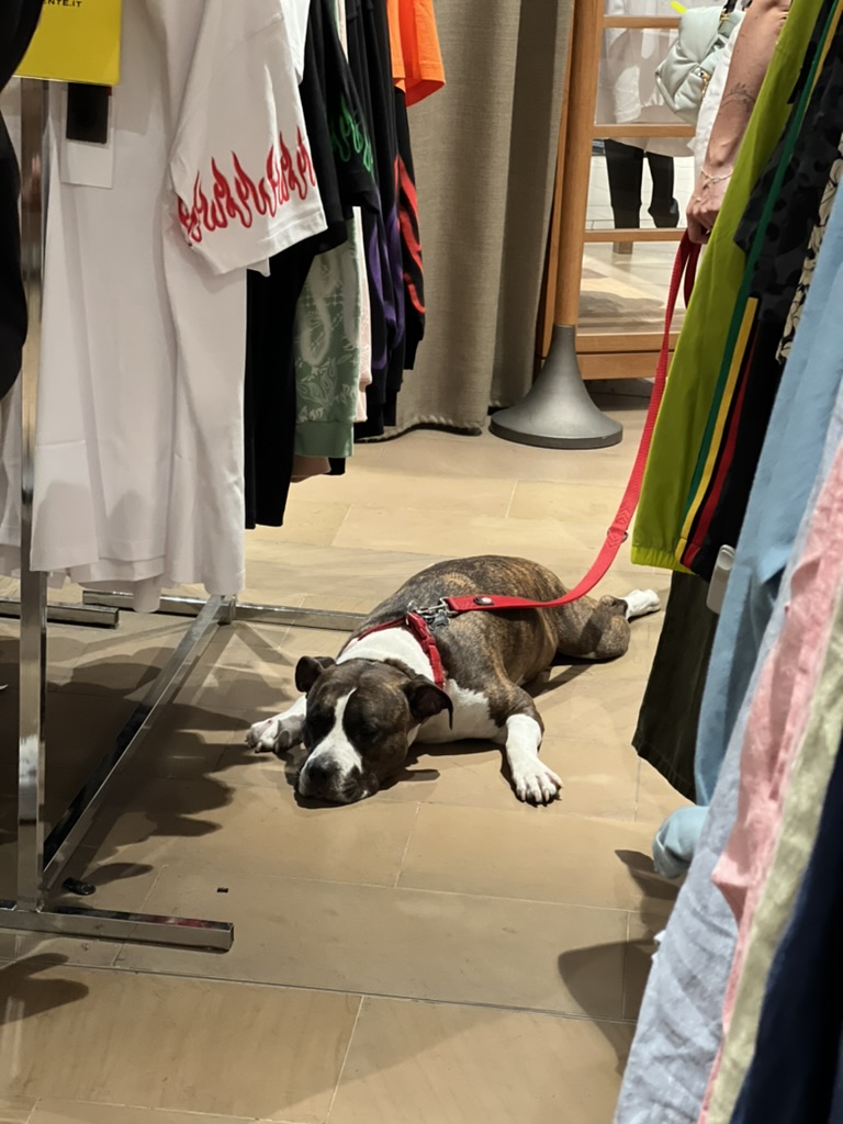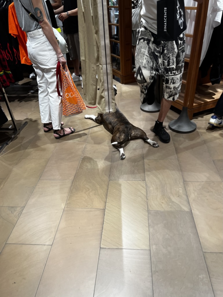 밀라노에서 지하철을 타면, 반려동물들을 쉽게 볼 수 있습니다. 자리는 좀 차지하겠지만 크게 불편해하는 사람은 없어 보였어요. 유럽 여행 때마다 명품 샵까지 동물친구들을 허용하는 모습을 많이 보는데요. 마실 물그릇까지 준비되어 있는 것을 보고 동물들을 배려하는 모습이 보기 좋았습니다. 쇼핑하는 내내 정말 많은 강아지들을 본 것 같아요.