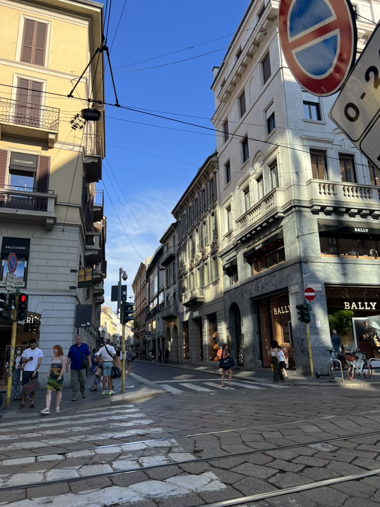 먼저 밀라노의 쇼핑 스트릿 중 명품 거리인 몬테 나폴리오네 근처의 스피가 거리를 걸었습니다. 햇살이 정말 뜨거웠어요. 매일 선크림을 바르고 다녔는데도 그 때 탄 팔의 시계자국이 아직 선명하네요.